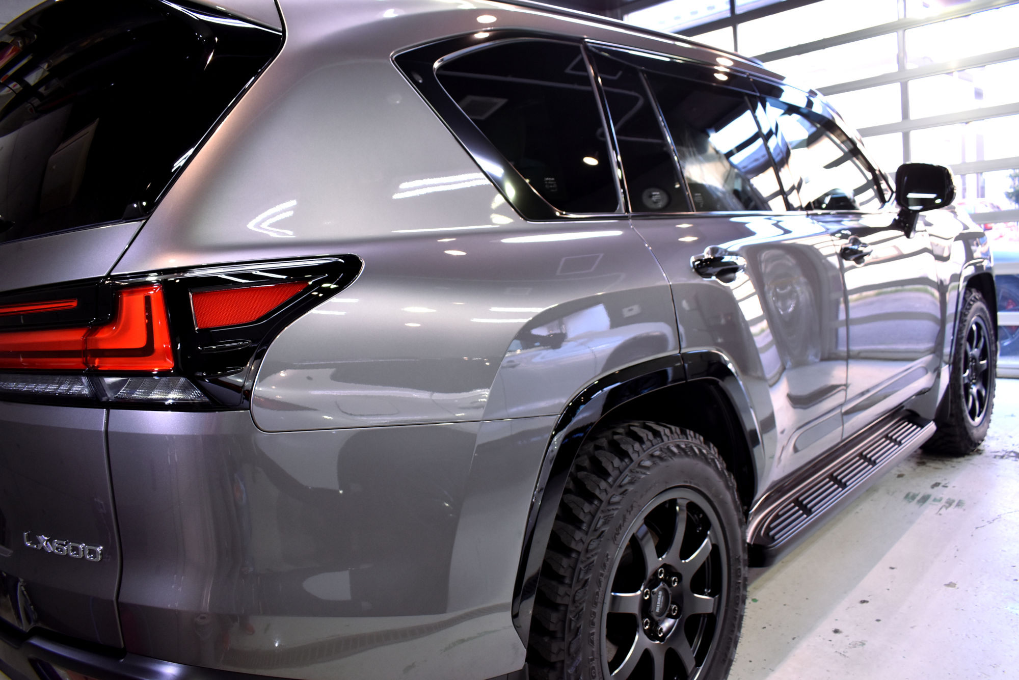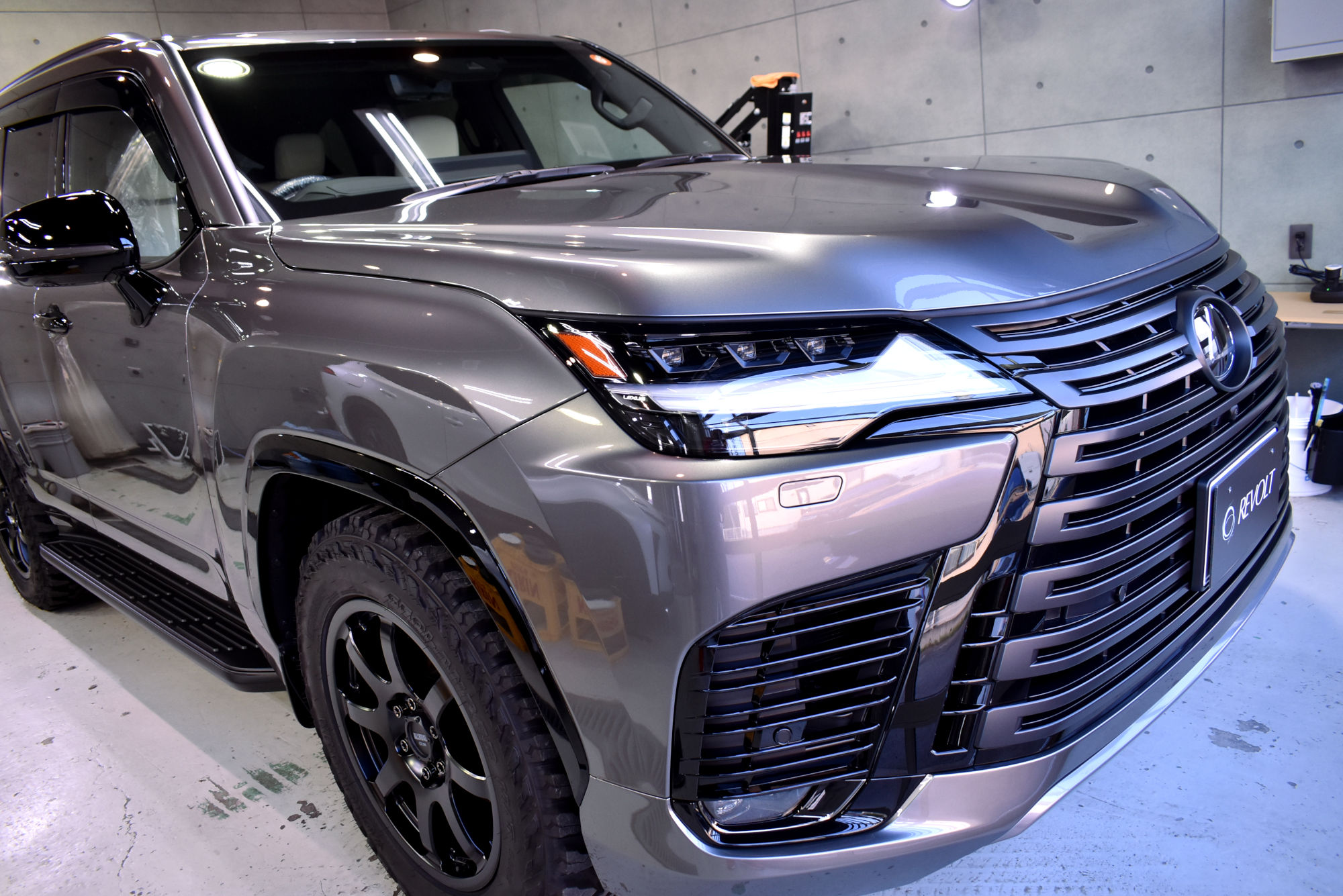 レクサスのフラッグシップSUVであるLXですが、こちらのモデルは「オフロード」と悪路走破に特化したグレードで、空気ばねと油圧回路を一体化した「アクティブハイトコントロール(AHC)サスペンション」を装備し、何があっても生きて帰るための車高が確保されています。またエクステリアではスピンドルグリルやバンパー・ドアハンドル・ウインドウモール・フェンダーアーチモールなどがメッキや車体色からブラックやマットグレーに変換されており、オフロード感が強調され、悪路走破性とラグジュアリー性が高次元で融合されています。