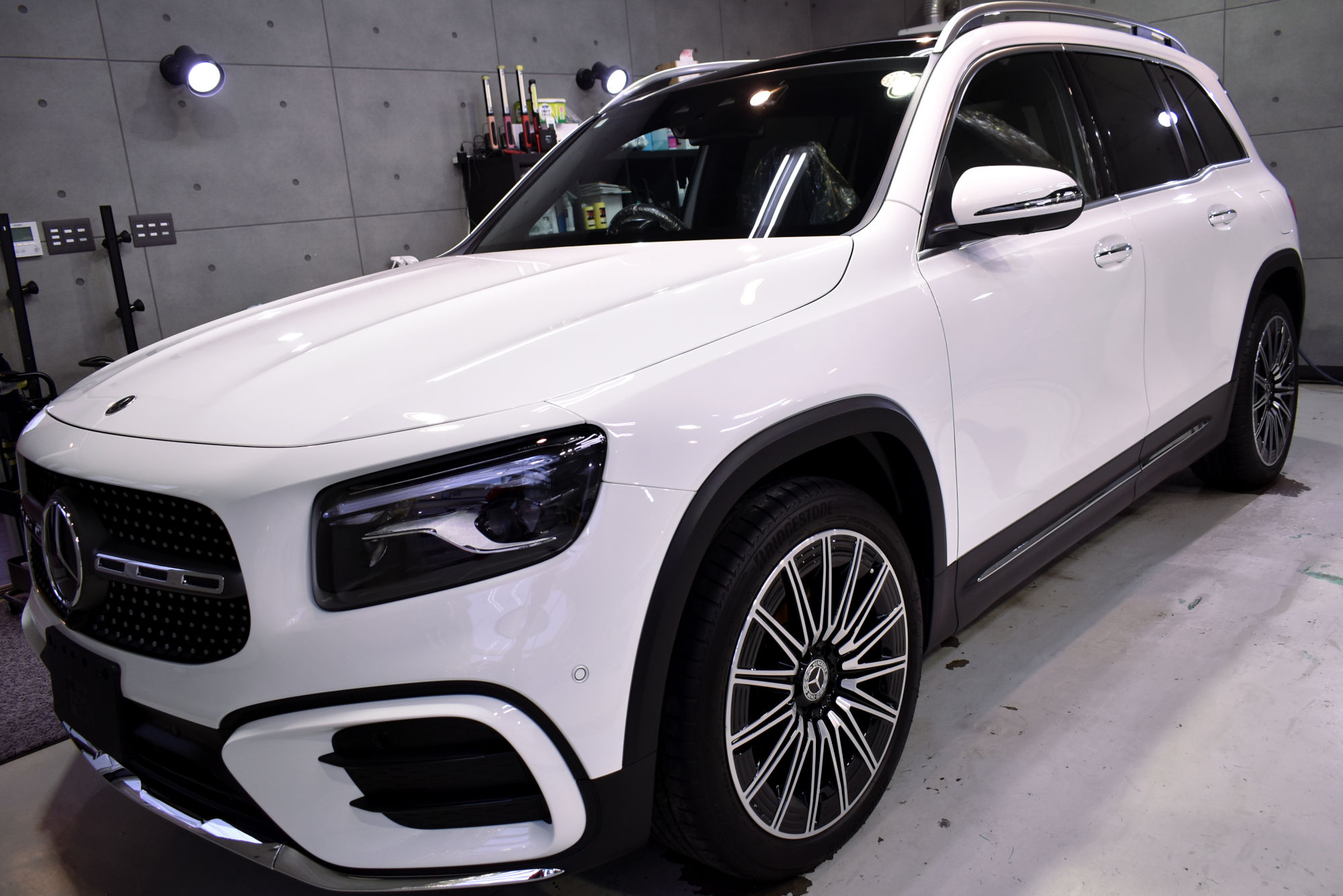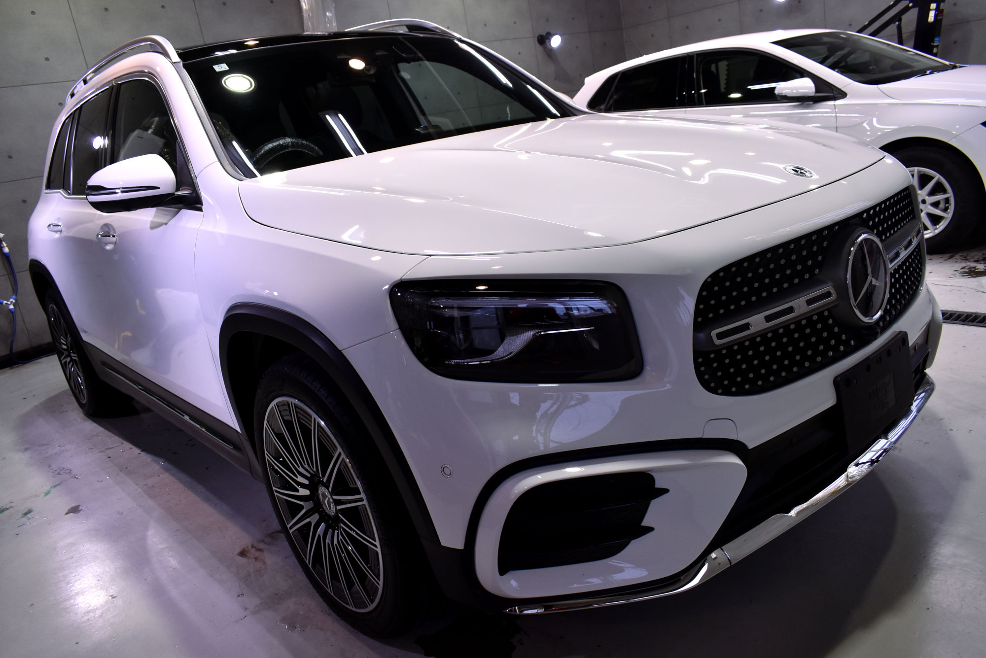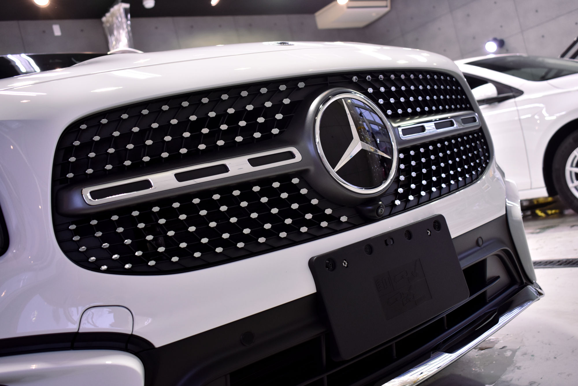 こちらGLBは力強いスクエアシルエットと都会的な洗練さを併せ持つデザインで、SUVらしいタフさを残しながらも、メルセデスらしい上質な存在感を放っております。そしてこちらのモデルには「AMGラインパッケージ」が装着されており、左右に大きな開口部が設けられたアグレッシブな意匠のバンパーと、クローム仕上げのダイヤモンドパターンが目を引くシングルルーバーのグリルが採用されスポーティーさが強調されております。