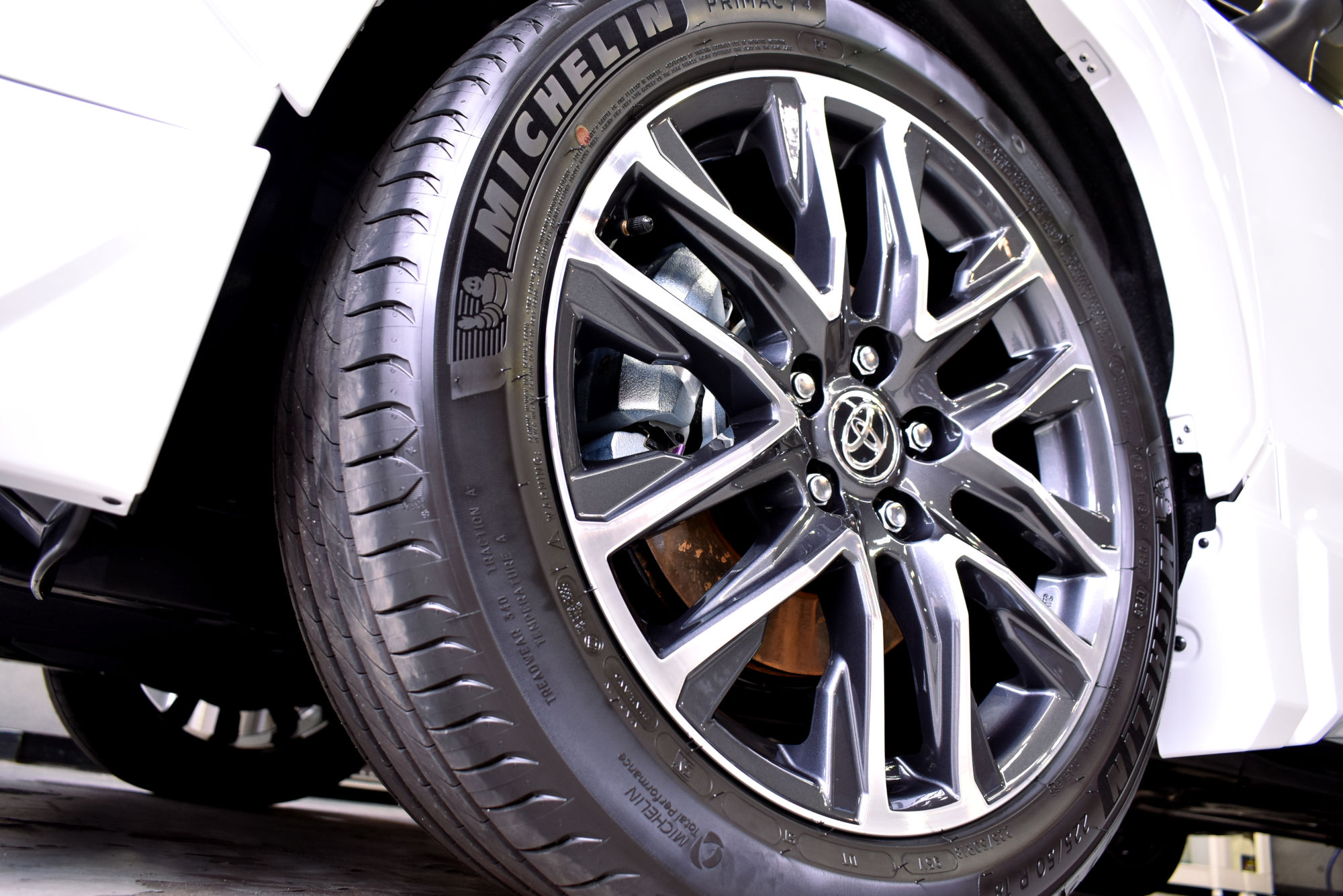 カローラシリーズの主力となっているのが今をときめくSUVのクロス、こちらは2021年にデビューして初めてのフェイスリフトを迎えたNEWモデルです。エクステリアでは開口部がグラデーション状になった新デザインのバンパーを採用。ヘッドランプユニットも刷新されており、ワイドなデイタイムランニングライトが新鮮です。なお、ご入庫時には確認できなかったのですが、日本初採用という「シグナルロードプロジェクション」前方路面に向けて注意喚起のシェブロンを投影、ウインカーやハザードの作動と連動し夜間に歩行者や自転車への認識性を高めることでの事故抑制を狙いとしている機能も装備、シリーズの主力ならではの力の入れようです。