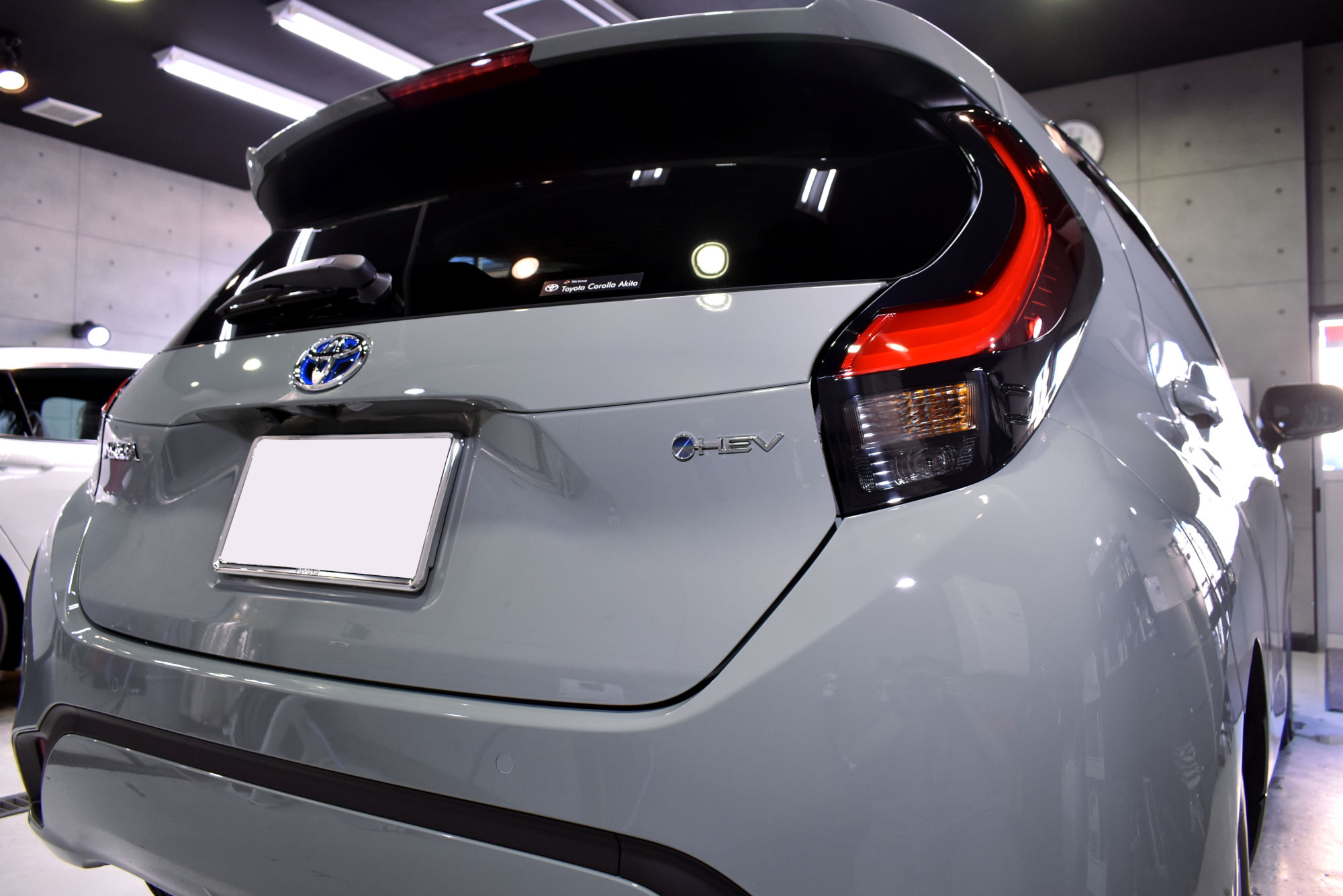 世界最高クラスの技術を詰め込み、高い燃費性能と力強い走りの両立を叶えているアクアですが、2025年9月1日にフェイスリフトモデルが販売開始されました。こちらはその前の最終モデルとなります。非常に沢山の施工のご依頼をいただき、ホームページの施工ギャラリーの更新が追い付いておりません。順次アップいたしますので、お待ちくださいませ。