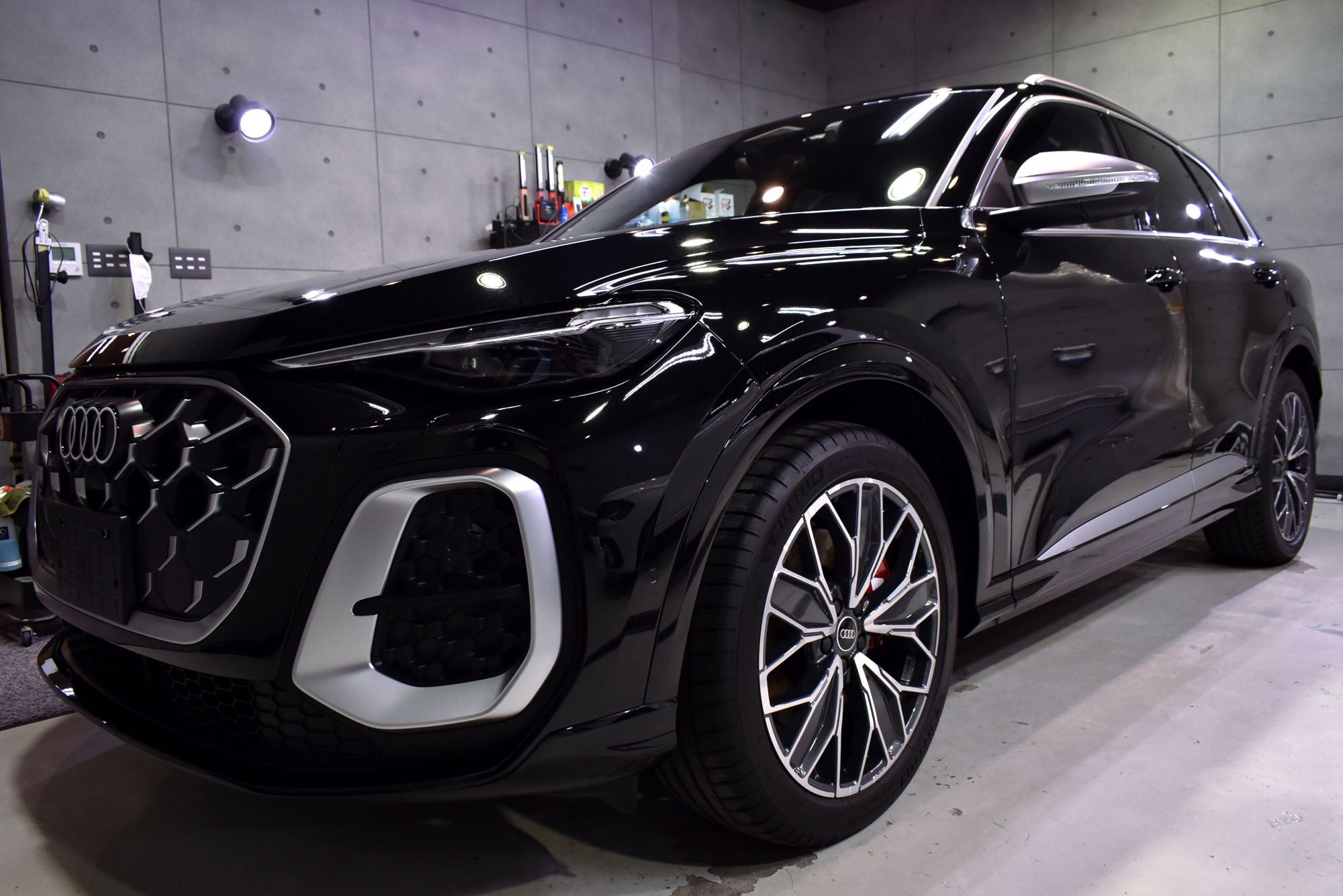 こちらは新型第三世代SQ5、エクステリアは、より立体的で彫りの深い、エッジを減らした連続的な面構成による力強い抑揚をもったボディラインが特徴的で、Sモデルであることを主張するアグレッシブなディテールと、圧倒的なパワーを操る愉しさ、そして室内の実用性を高次元でバランスしており魅力的な1台に仕上がっております。