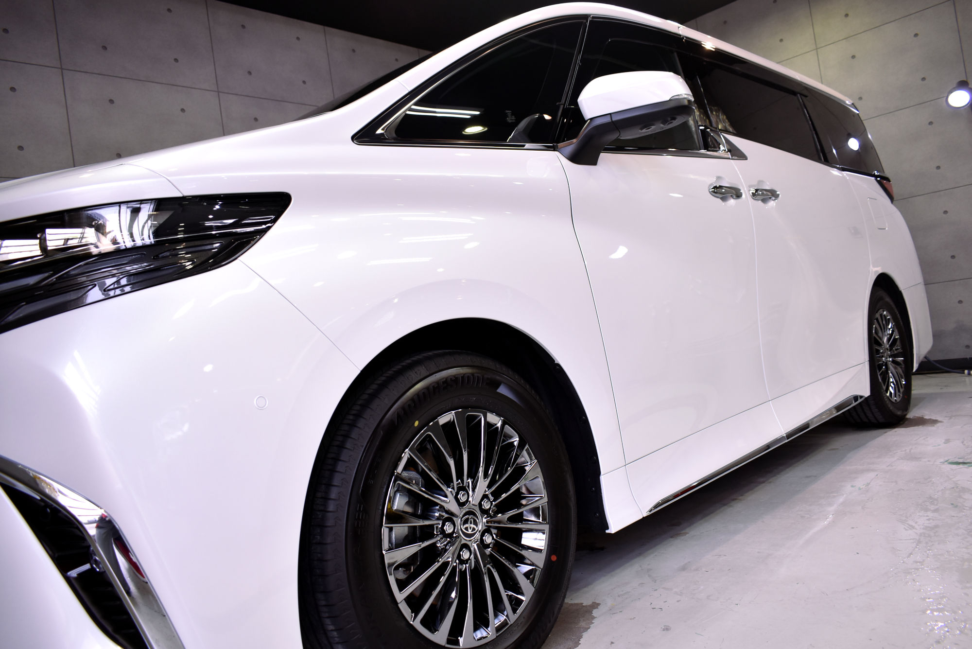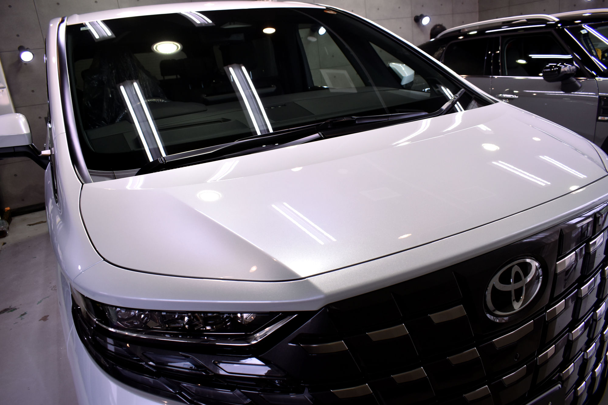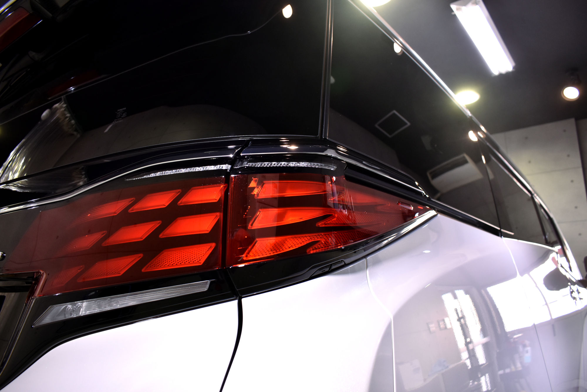 その後定着・硬化時間を取り、トップコート・オーバートップコートを塗布して最強のセラミックコーティング完成です。なお、こちらのトップコート2種類はドアヒンジやボンネット・バックドアの内側にも塗布しておりますので、汚れの付着を低減しオーナー様のメンテ性を高められるようにいたしました。