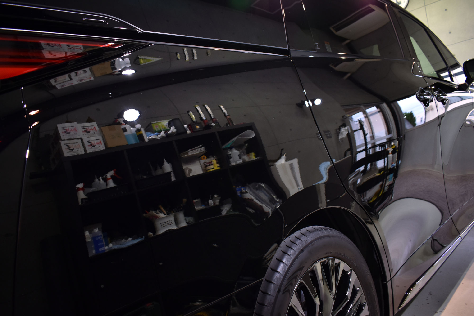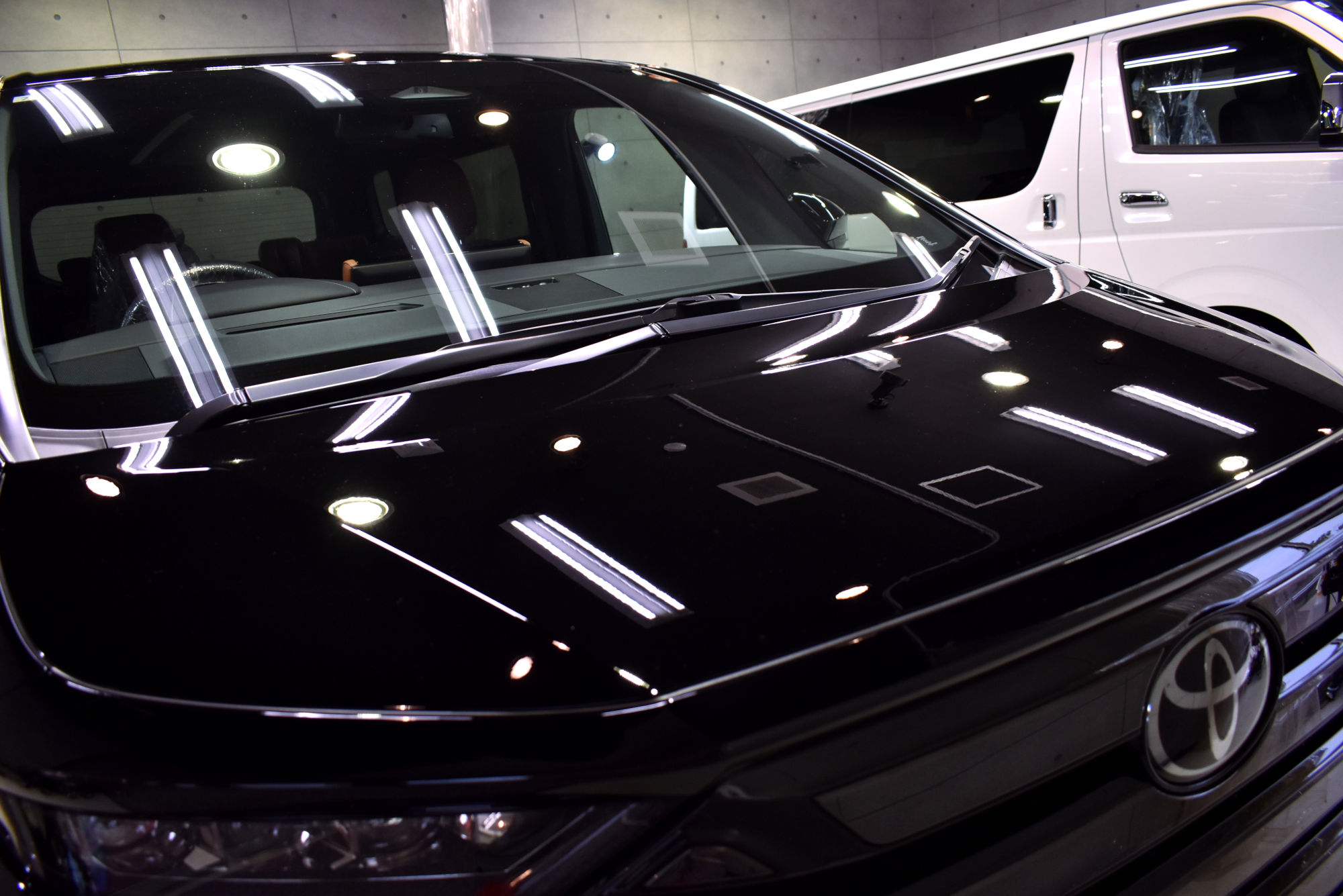こちらのお車は初度登録から現在までに付着した小傷やシミ等の汚れを細部洗浄から塗装研磨までの下地処理にて新車以上のコンディションまで引き上げております。こちらの塗装は非常に繊細なブラック(202)ですが、リボルトグループが誇る「Revolt adjust system(リボルト アジャスト システム)」という独自の研磨により水鏡のような状態に仕上がりました。その後、綺麗に整いました塗装面には、次世代コーティングである完全硬化型セラミックコーティングをたっぷり塗布します。低分子なので緻密な塗装表面にしっかりと入り込みその後完全硬化します。これで、艶、輝きに加えて保護力、防汚力をアップさせます。そして最後にトップコートとエクストリームですので、オーバートップコートをコーティングして複層式コーティングを完成させました。こちらのトップコートは抜群の防汚性能により汚れが付着しにくく、付着してしまっても簡単に洗い流すことが出来ます。リボルトのボディコーティングコースでは、ボディだけでなく樹脂・プラスチックパーツ等にも施工いたします。リボルトプロ・エクストリームであれば、素材の良さをそのまま生かし、自然な風合いで更にコントラストを高めることが可能です。また、ボディー同様に撥水効果が高まり汚れの蓄積も軽減されます。