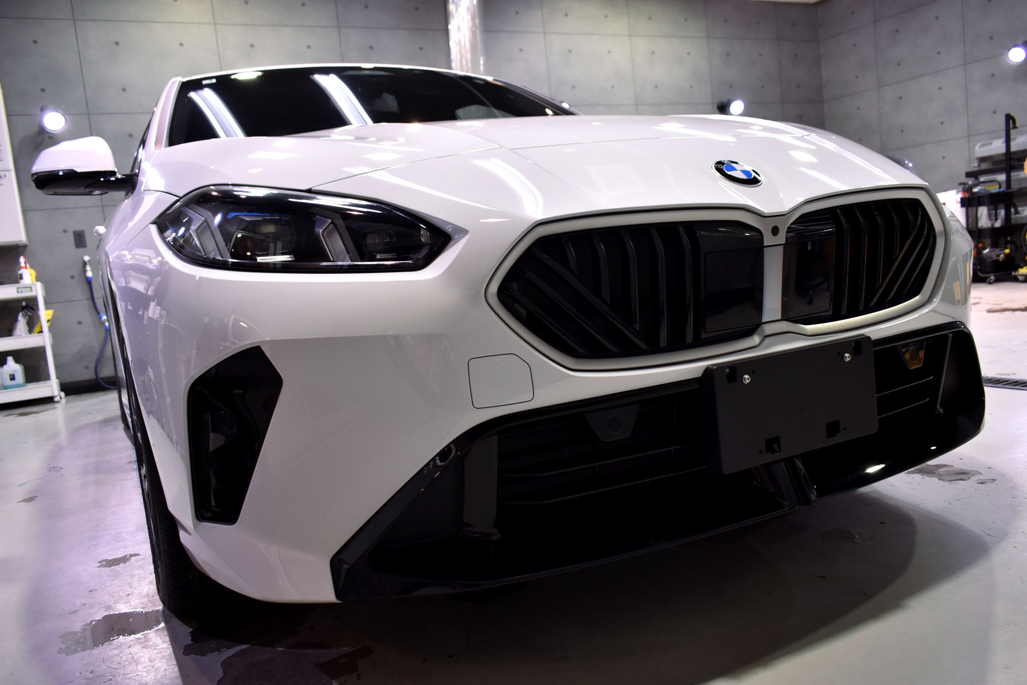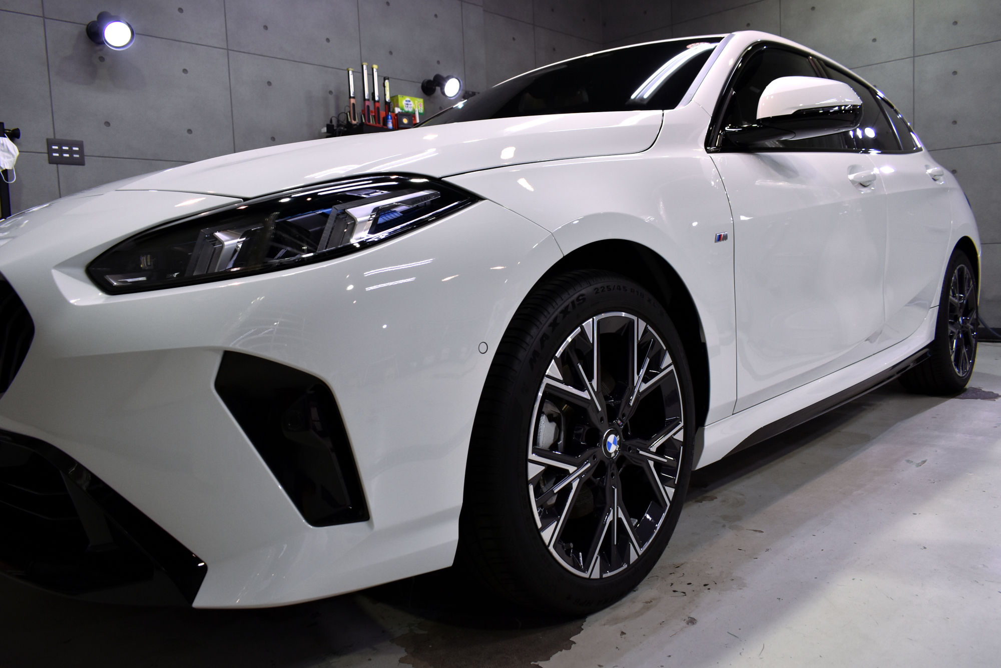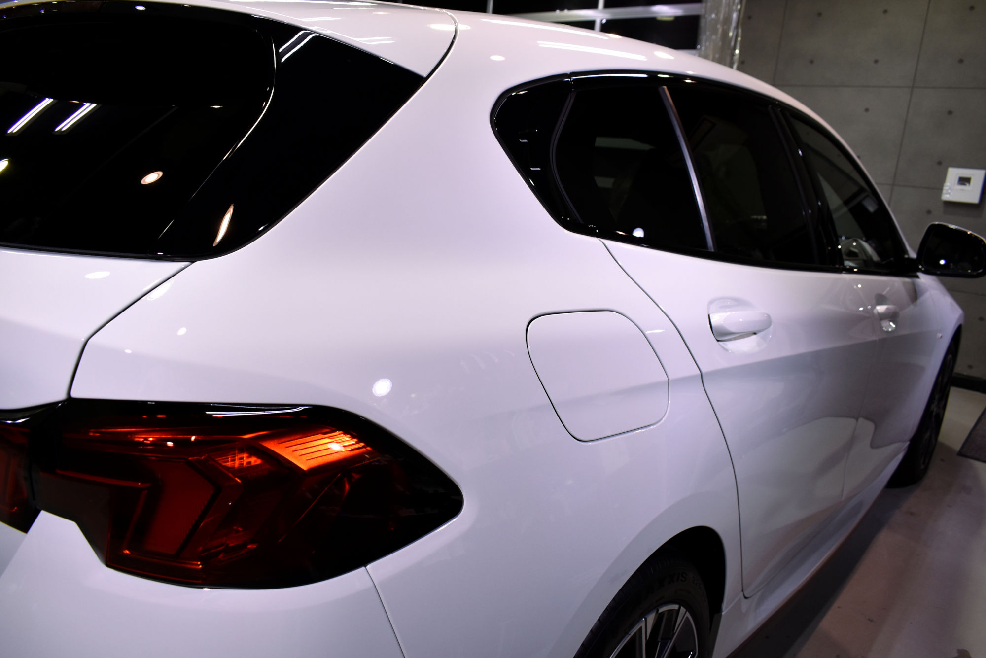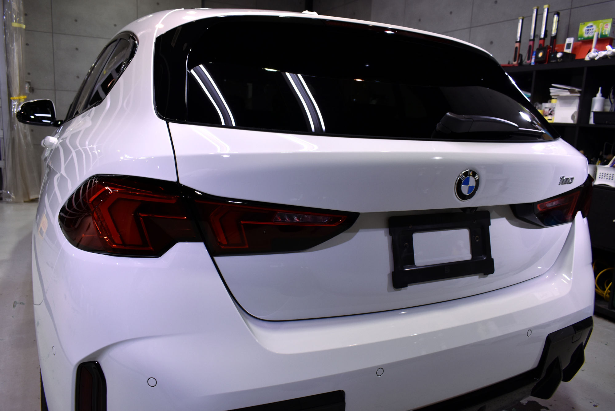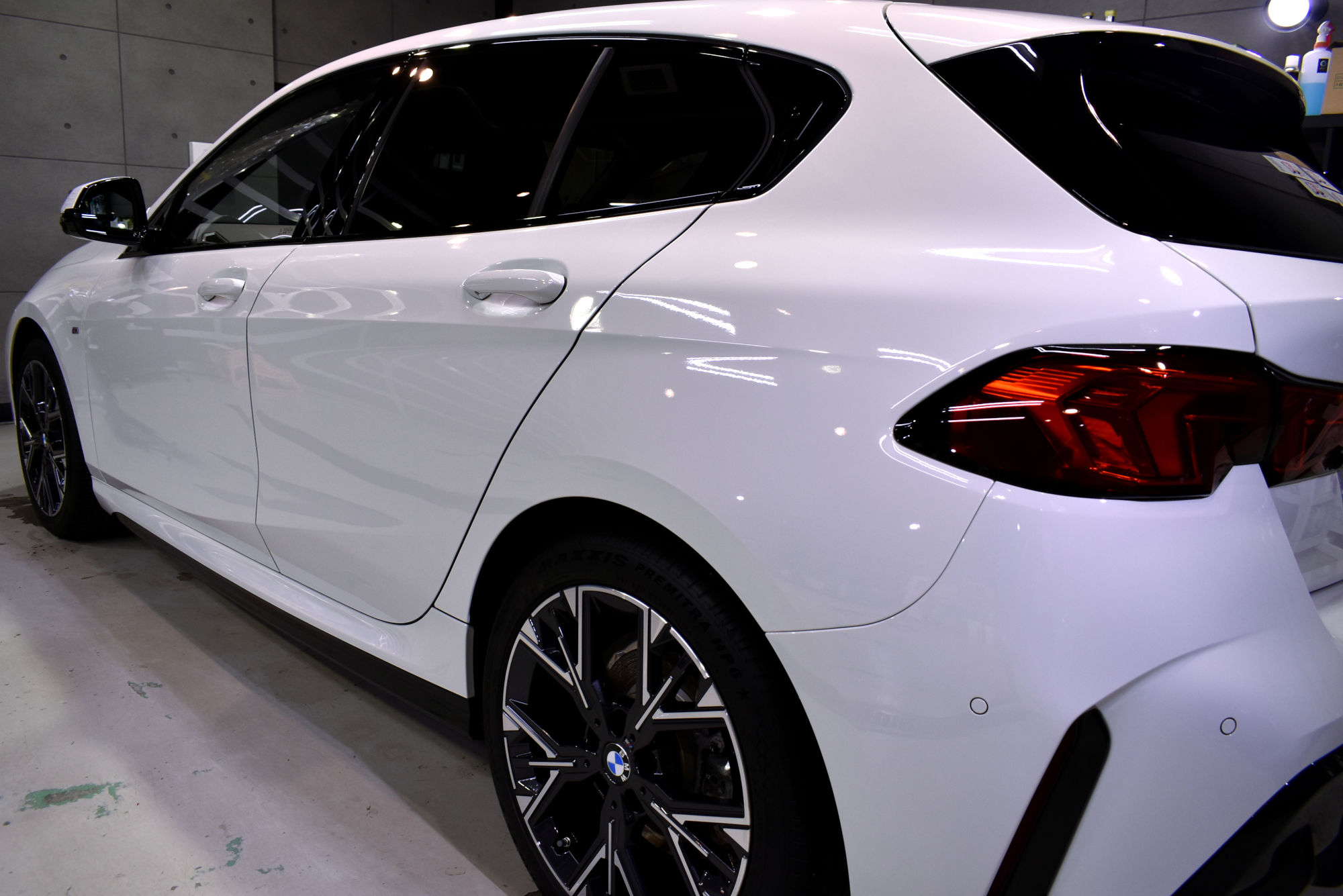 施工につきましては新車でのご入庫でしたが、細部洗浄から始め塗装研磨へと移行いたします。「リボルト」の研磨につきましては、上位コーティングの「リボルト・プロ」と同等の磨きをいたします。ただし塗装面には優しくそして最大限の効果が得られるように、専用研磨剤とマシンを駆使して、新車以上の状態に導きます。