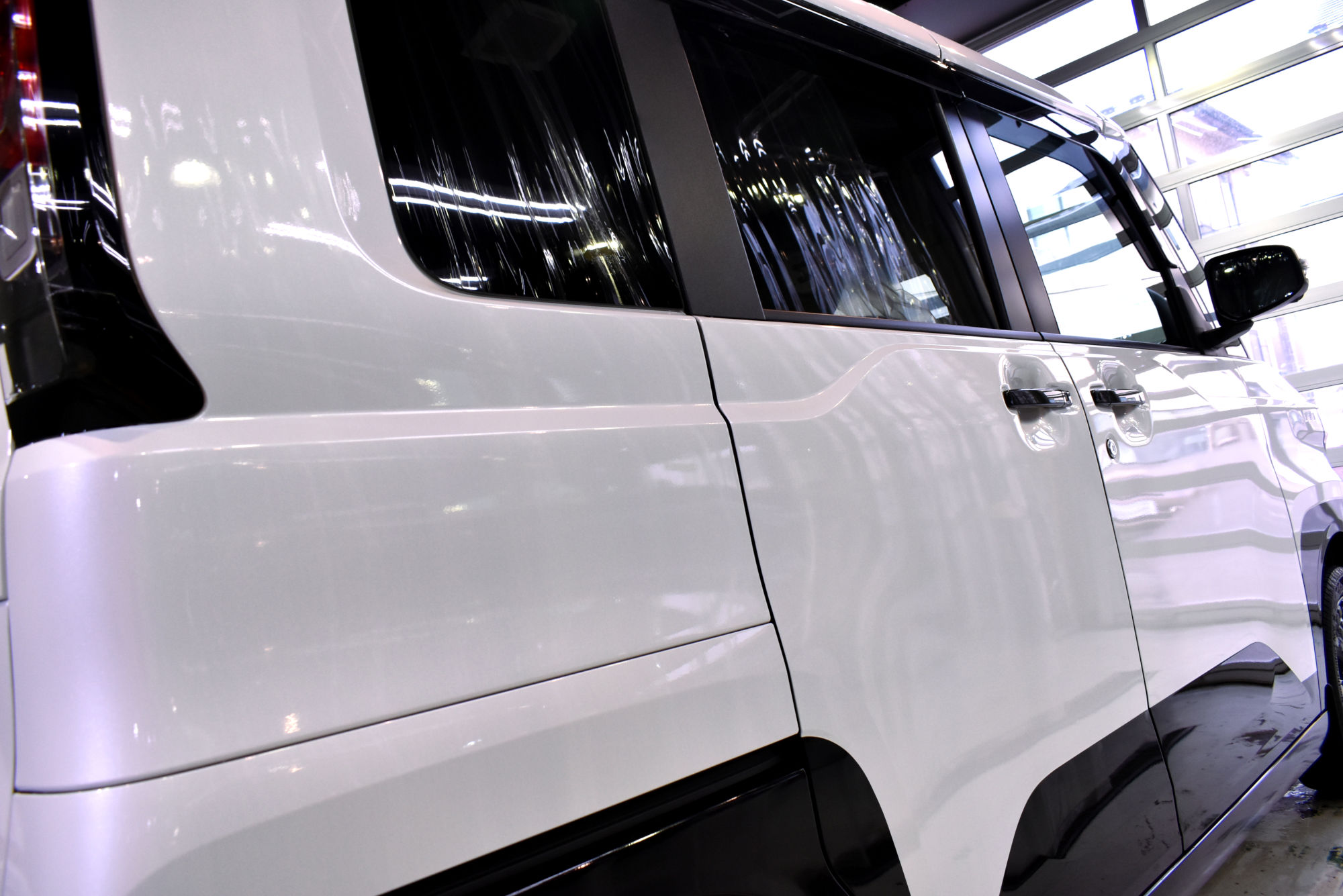施工につきましては、徹底した細部洗浄により、汚れや水ジミ等を除去し、コーティングが定着しやすいように下地を造ります。こちらのコーティングコースは塗装研磨の工程が含まれていない分その洗浄の良し悪しにコーティングの仕上がりや、定着性・持続性が左右されるためです。