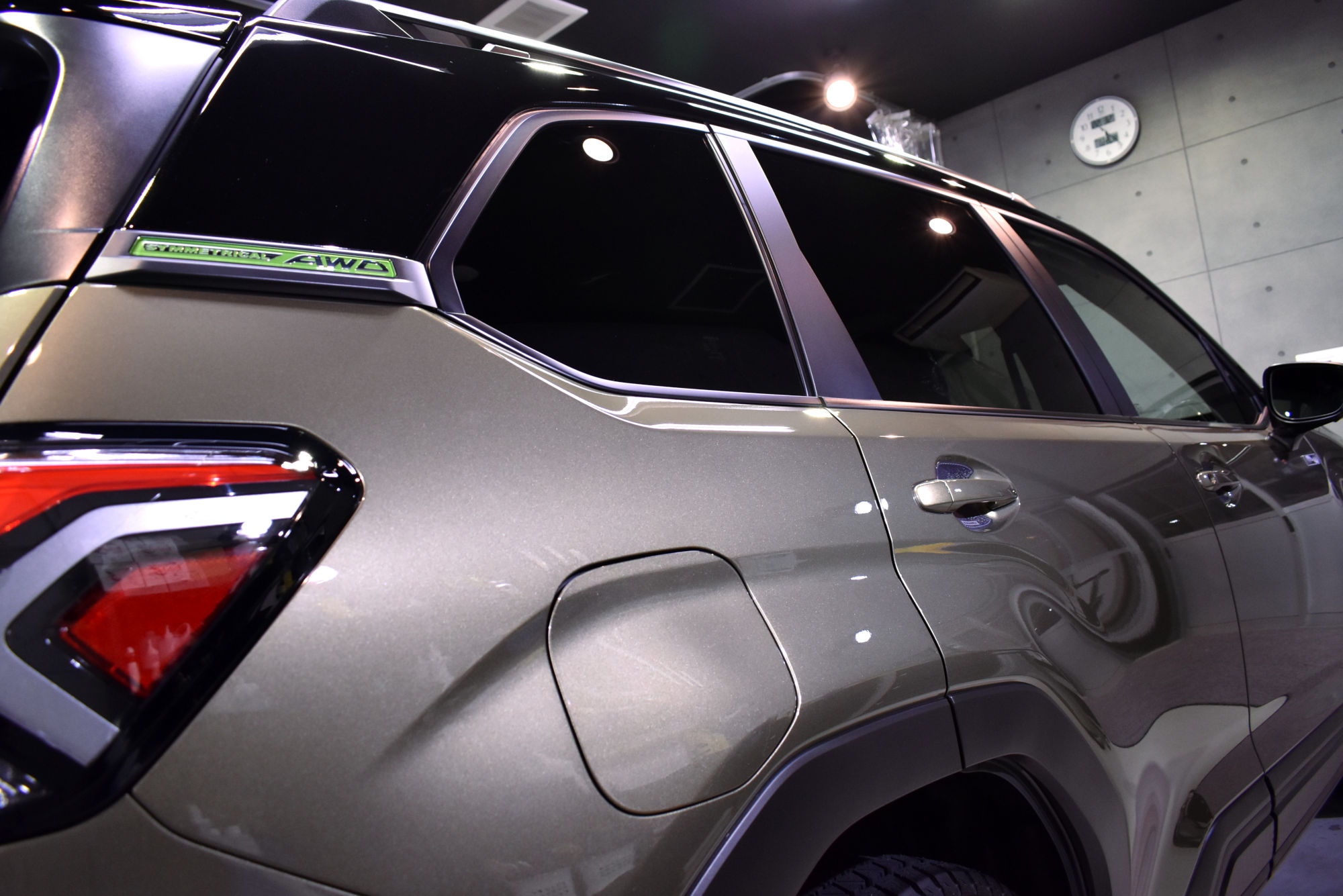 施工につきましては新車でご納車されてすぐにご入庫いただきました。下地処理は細部洗浄から始め、新車でも付着しているシミや小傷、塗装のモヤリなどを「Revolt Adjust System(リボルト アジャスト システム)」という独自の研磨手法により優しく除去します。
