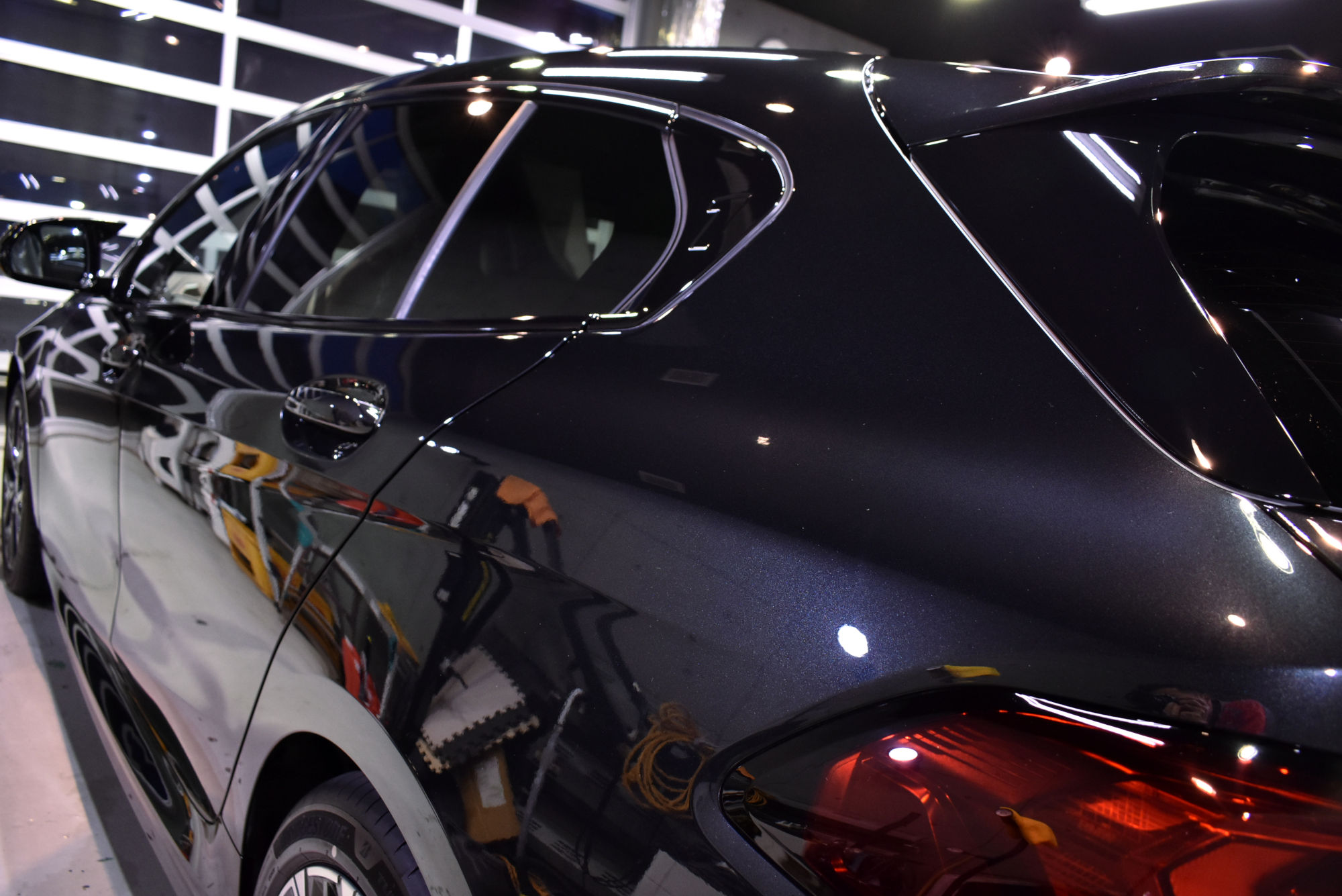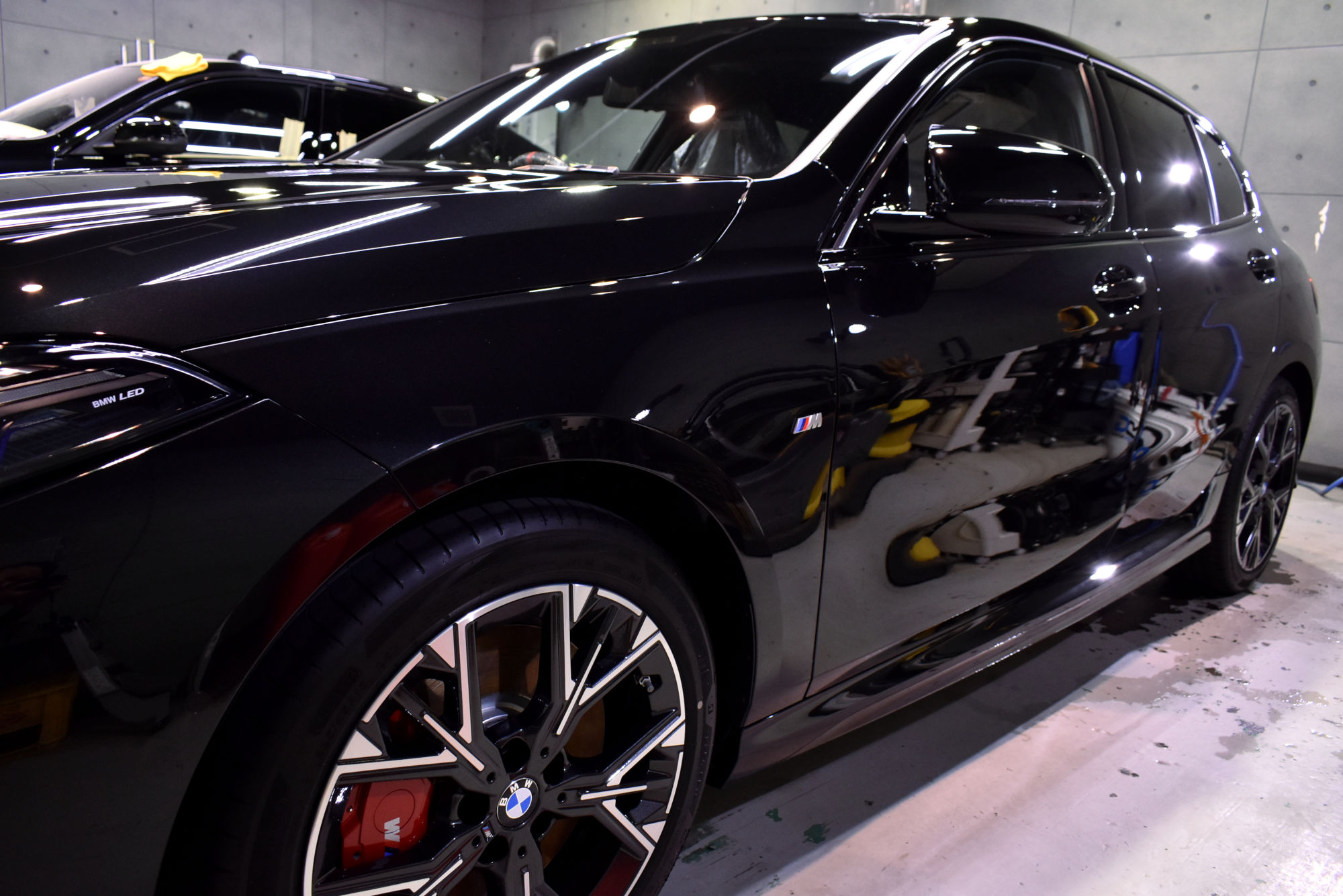 施工につきましては新車でのご入庫でしたが、細部洗浄から始め塗装研磨へと移行いたします。「リボルト」の研磨につきましては、上位コーティングの「リボルト・プロ」と同等の磨きをいたします。ただし塗装面には優しくそして最大限の効果が得られるように、専用研磨剤とマシンを駆使して、新車以上の状態に導きます。
