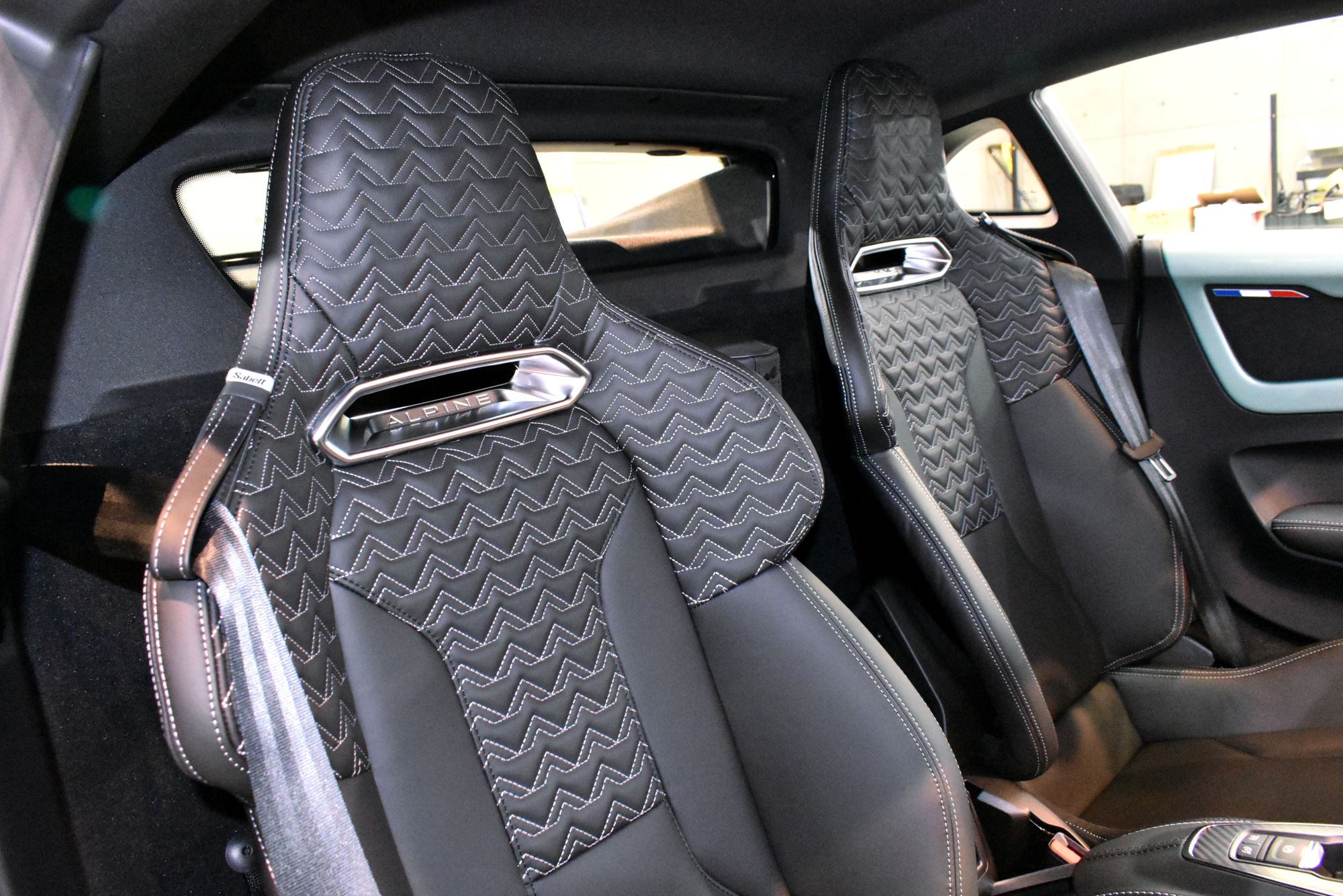 また、おしゃれなブラックのサベルト製レザーシートには専用コーティング剤を使用して2層式で施工、表面上に被膜を作るだけではなく、内部にも染み込んで繊維の一本一本にコーティングがされますので、汚れが付きにくいのはもちろんですが、一度ついてしまっても取れやすいというメリットがあり、また擦れにも強いという最高品質なシートコーティングです。